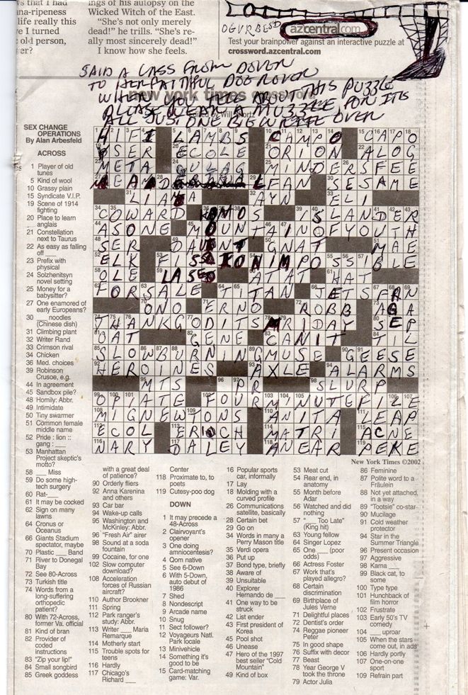 on Sundays he couldn't resist the urge to call out answers to any clue he could see at any time, frustrating my