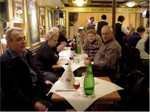 | The farewell dinner in a small cafe on the Mount of Martyrs Photo by Sallie Taylor |